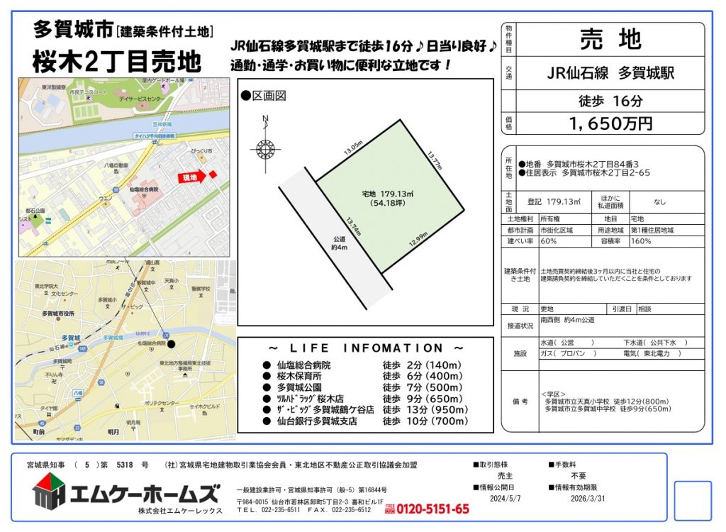 | 交通 | JR仙石線「多賀城駅」徒歩16分 |