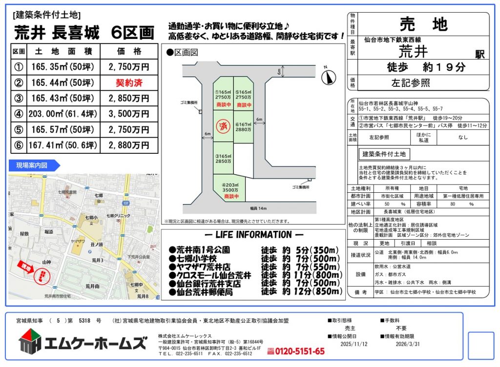 | 土地面積 | 公簿165.35㎡(50坪) ※①区画 |