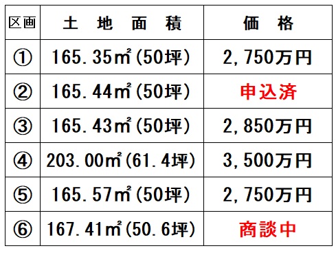 土地面積 | 公簿165.35㎡(50坪) ※①区画 |